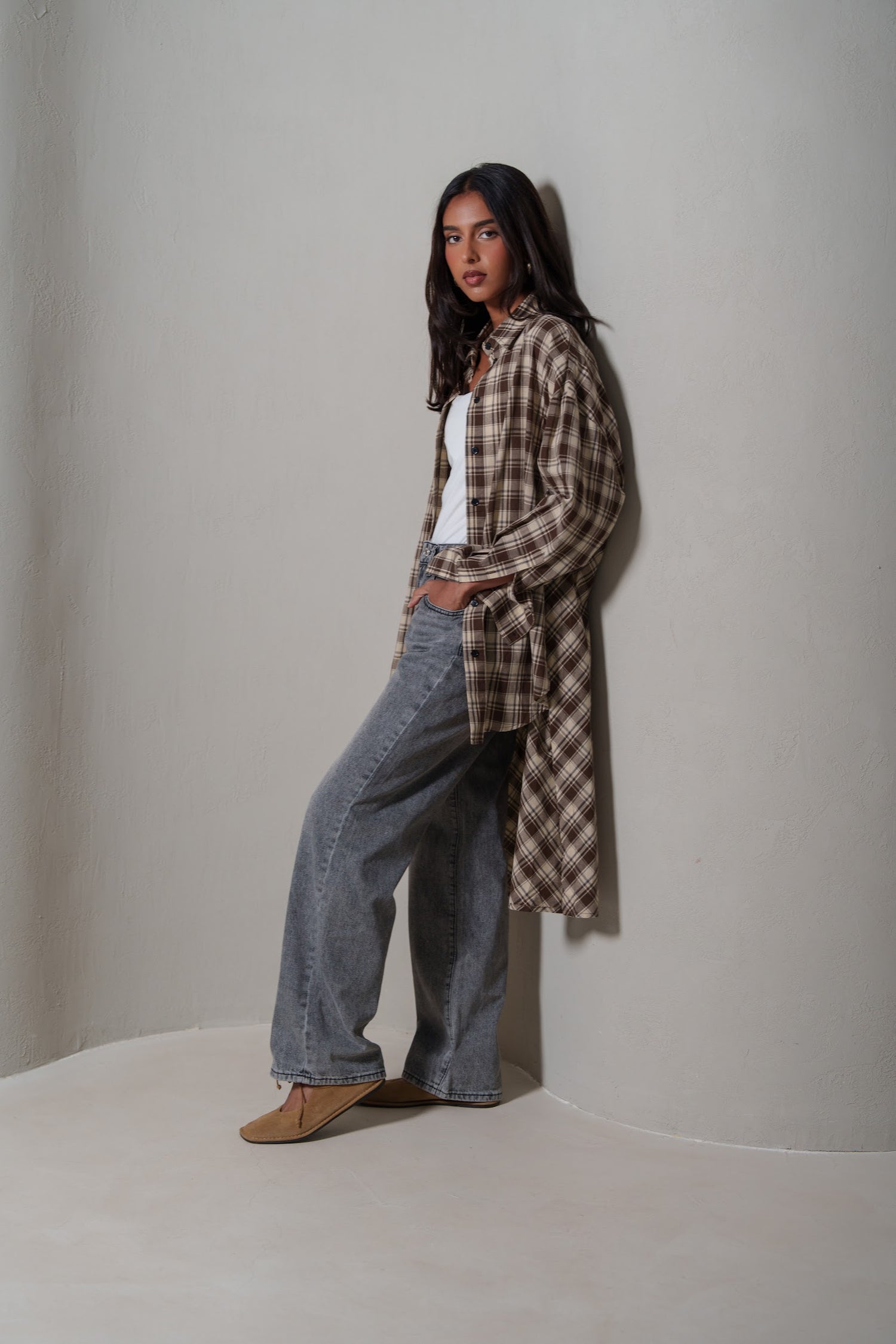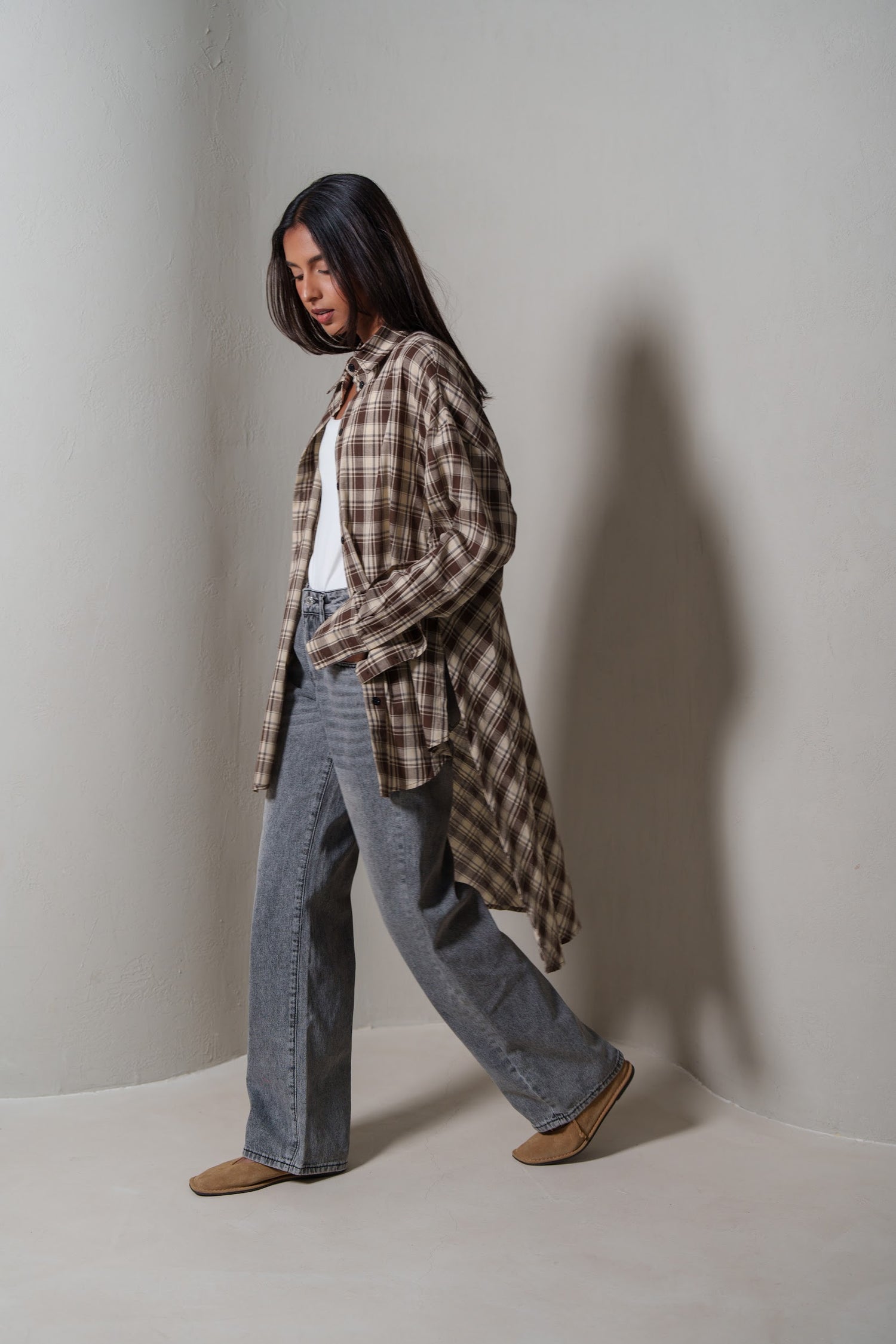 Brown Plaid Asymmetrical Shirt