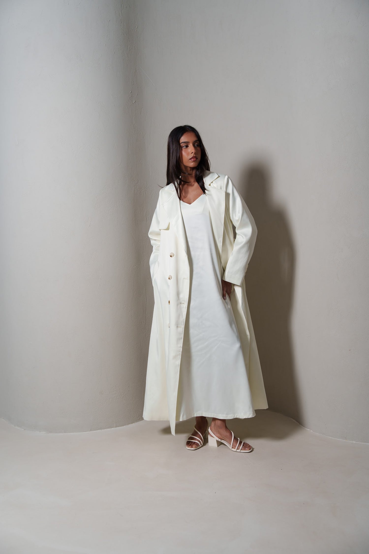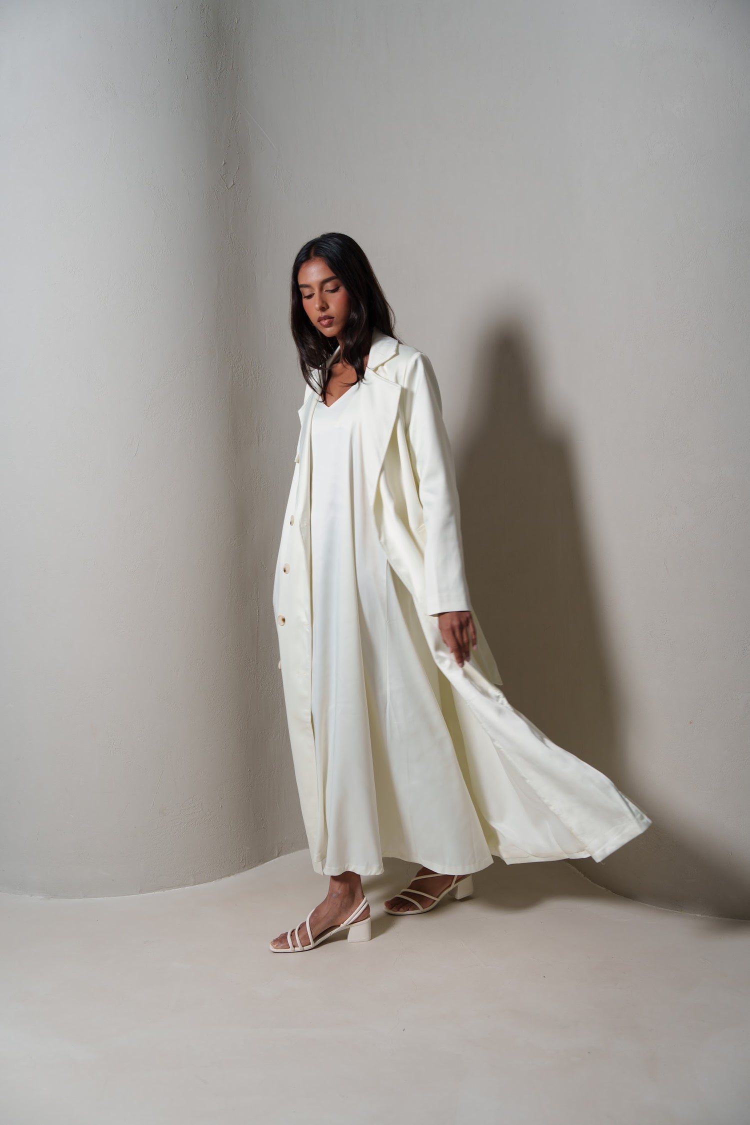 Crème Silk Long Blazer/Trench Set