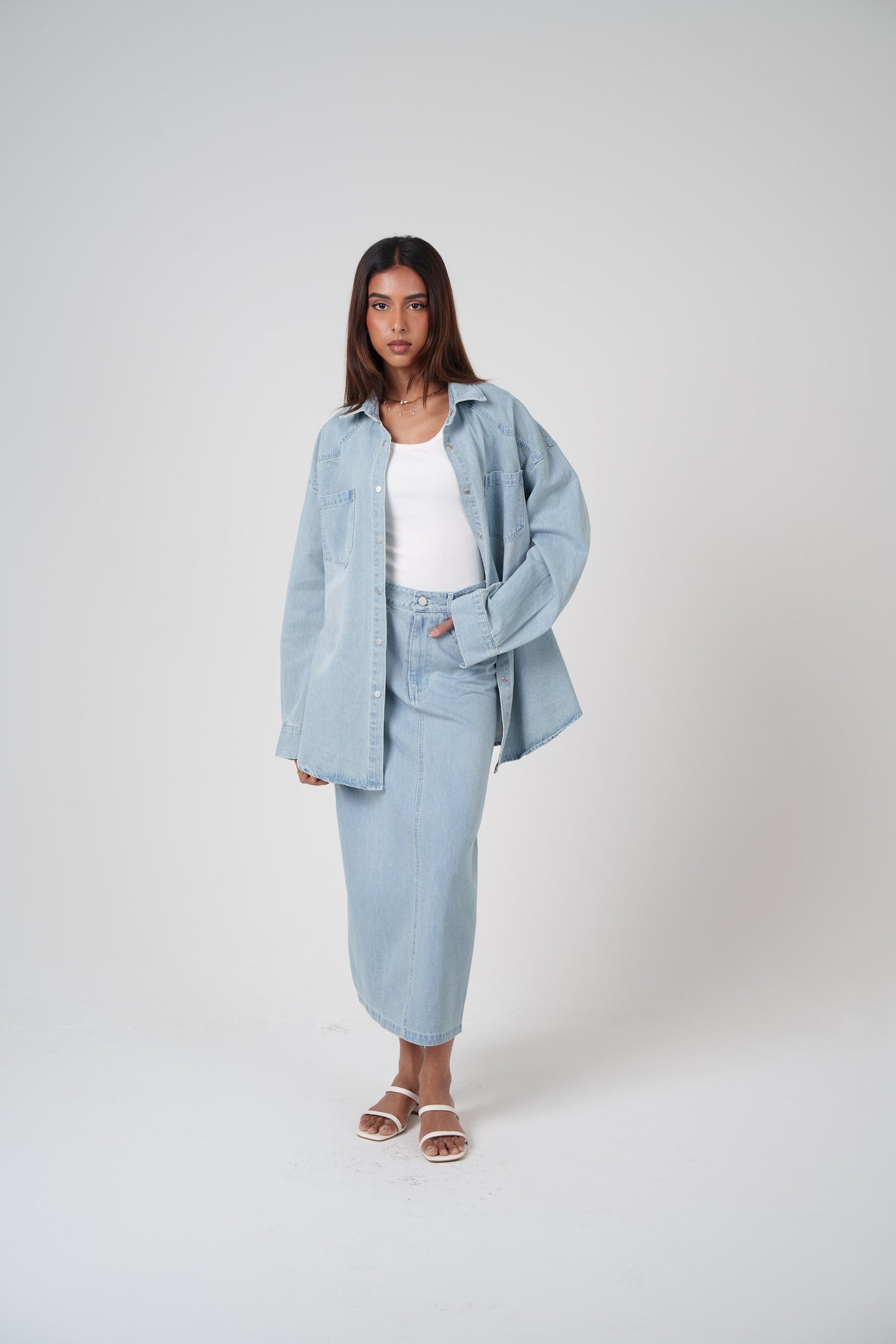 Denim Skirt & Shirt Set
