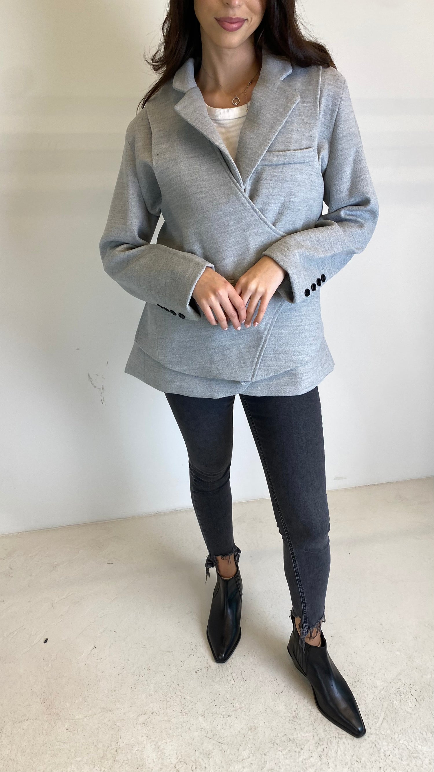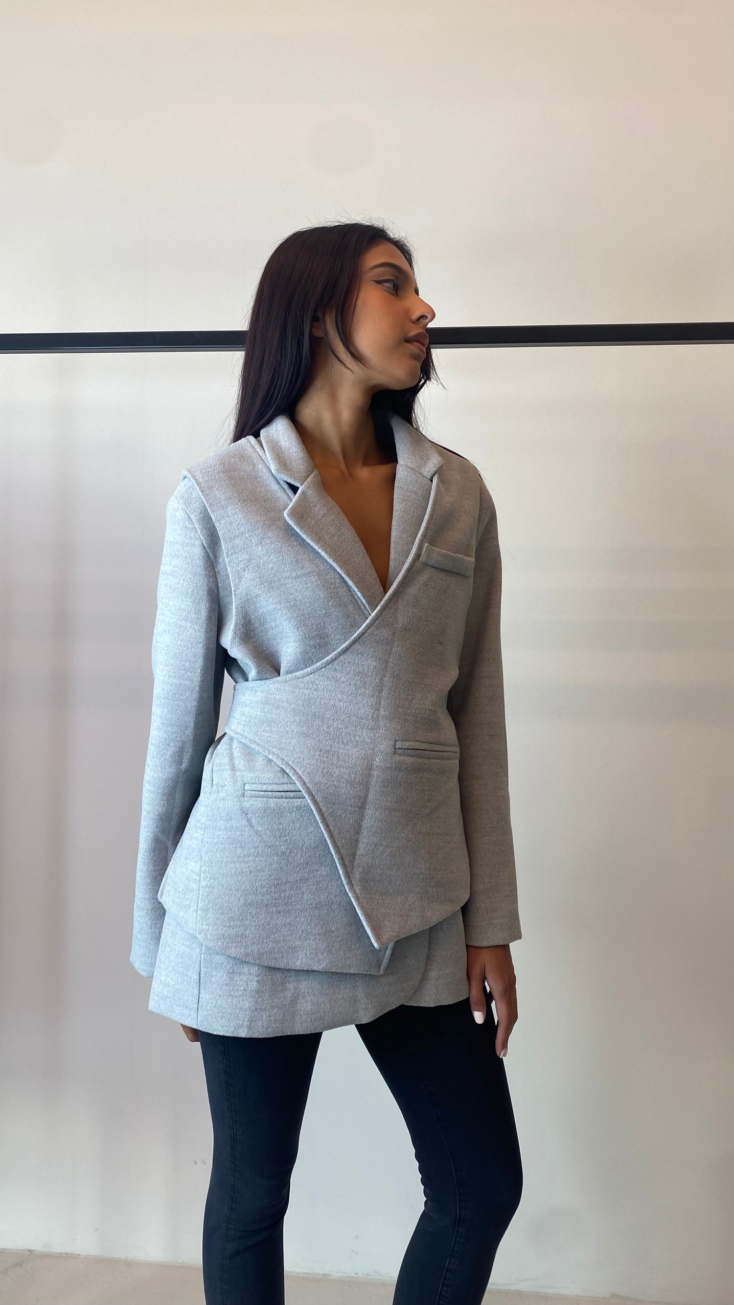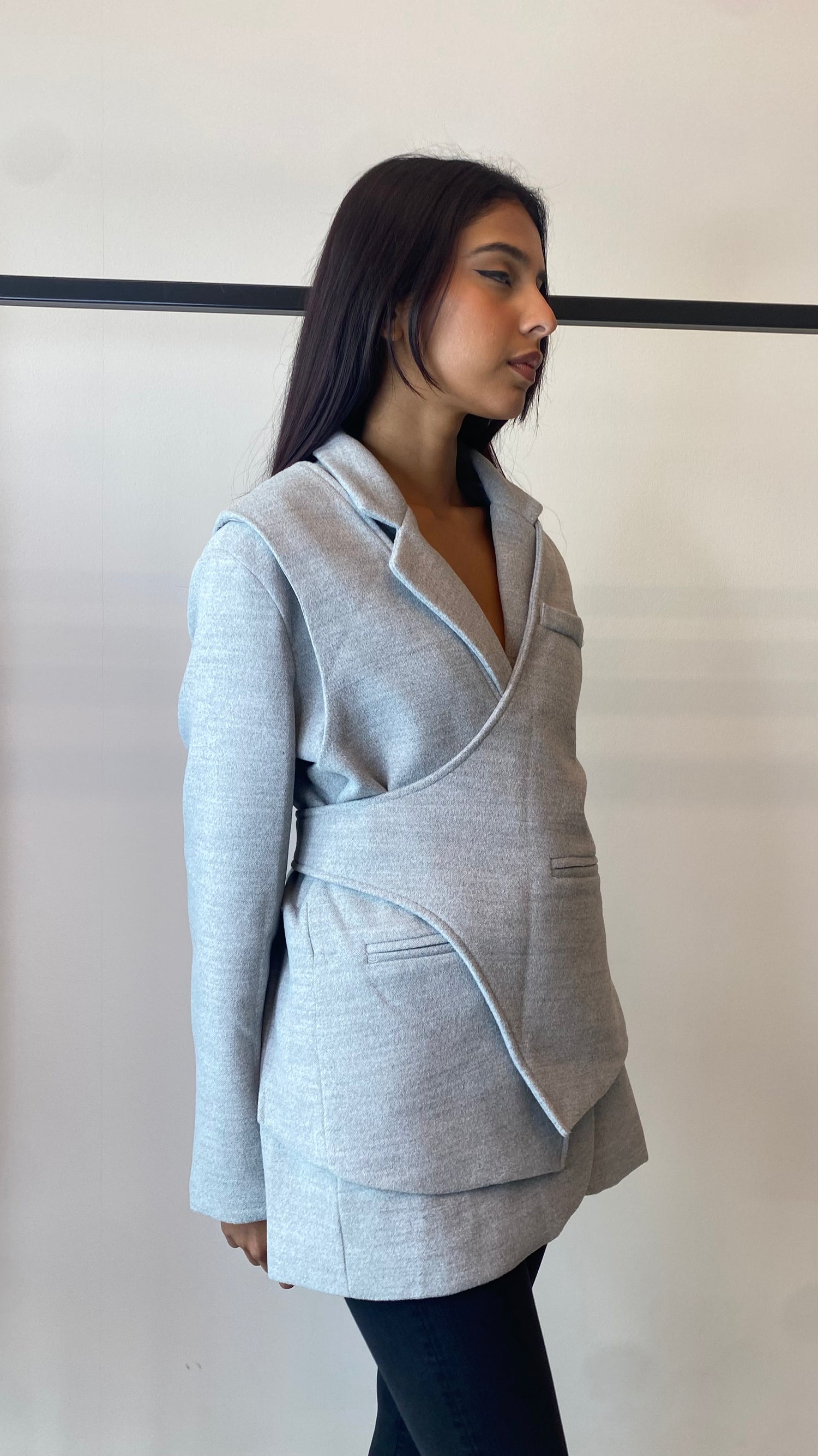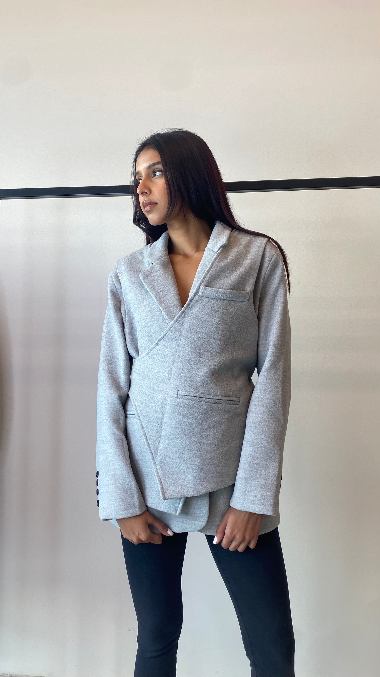 Grey Wool Wrap Blazer