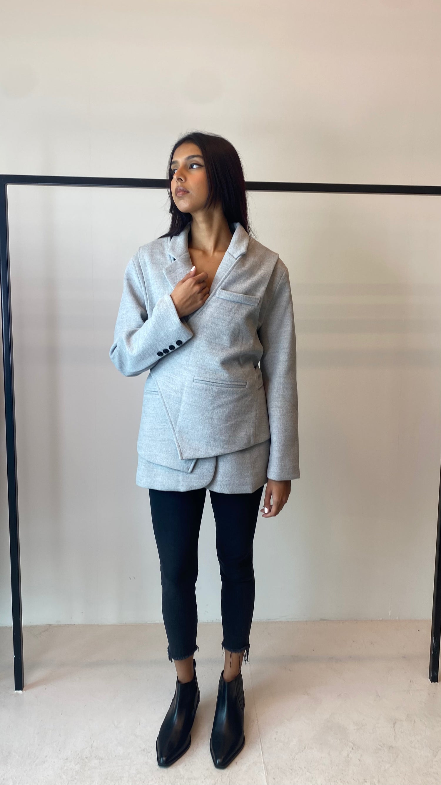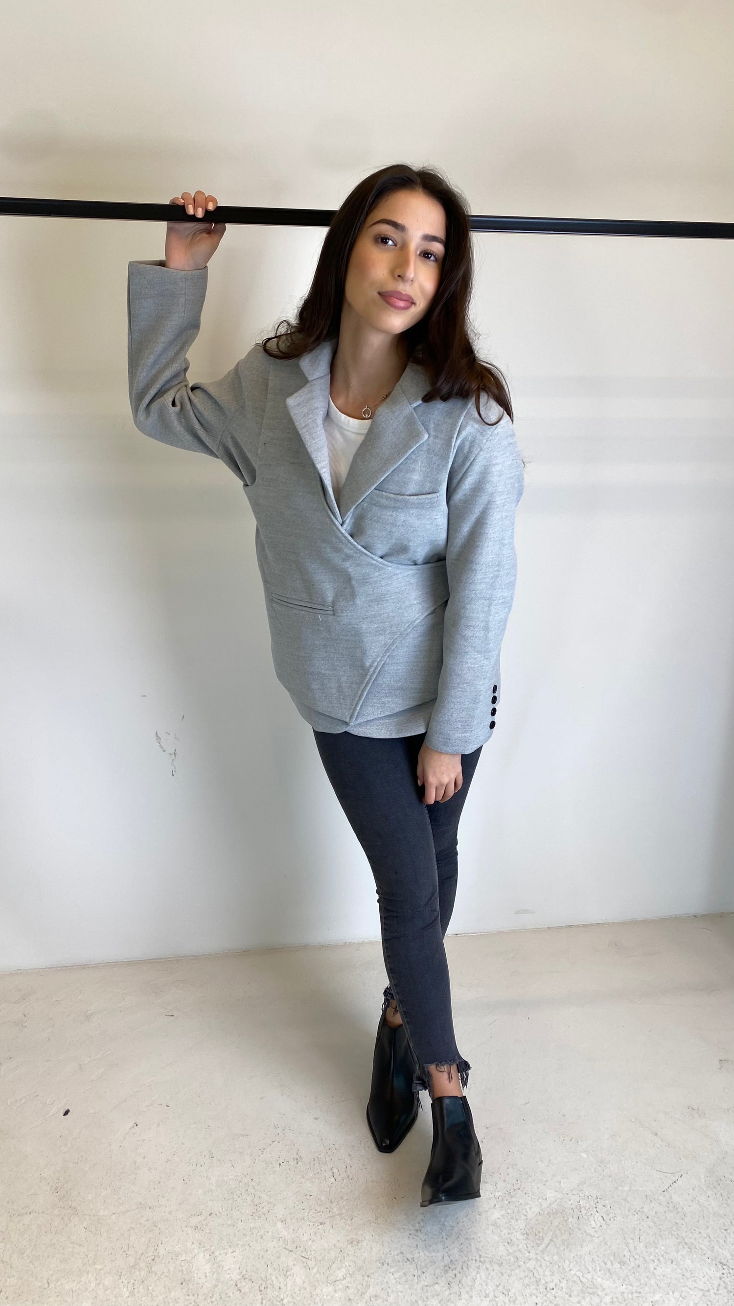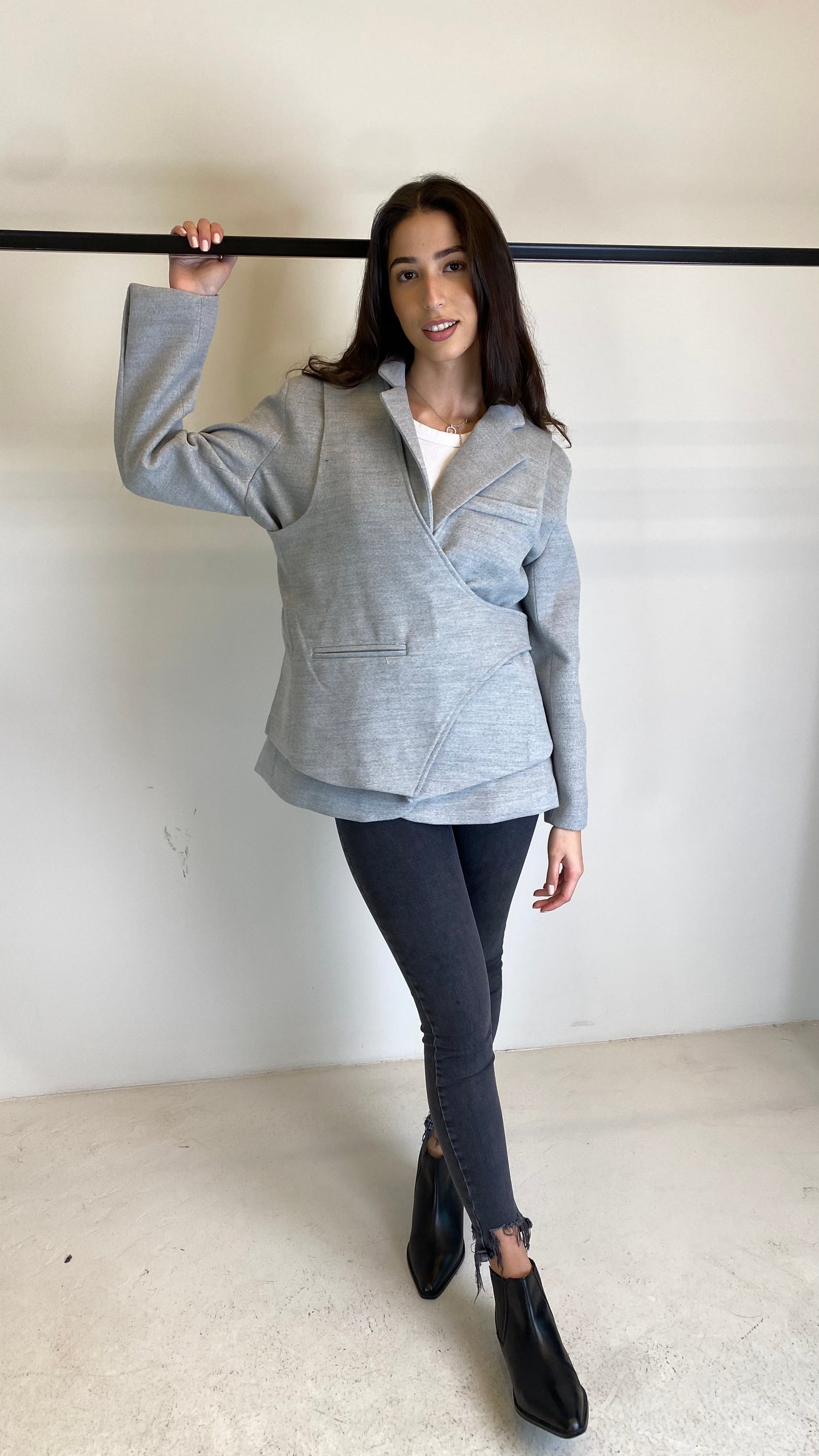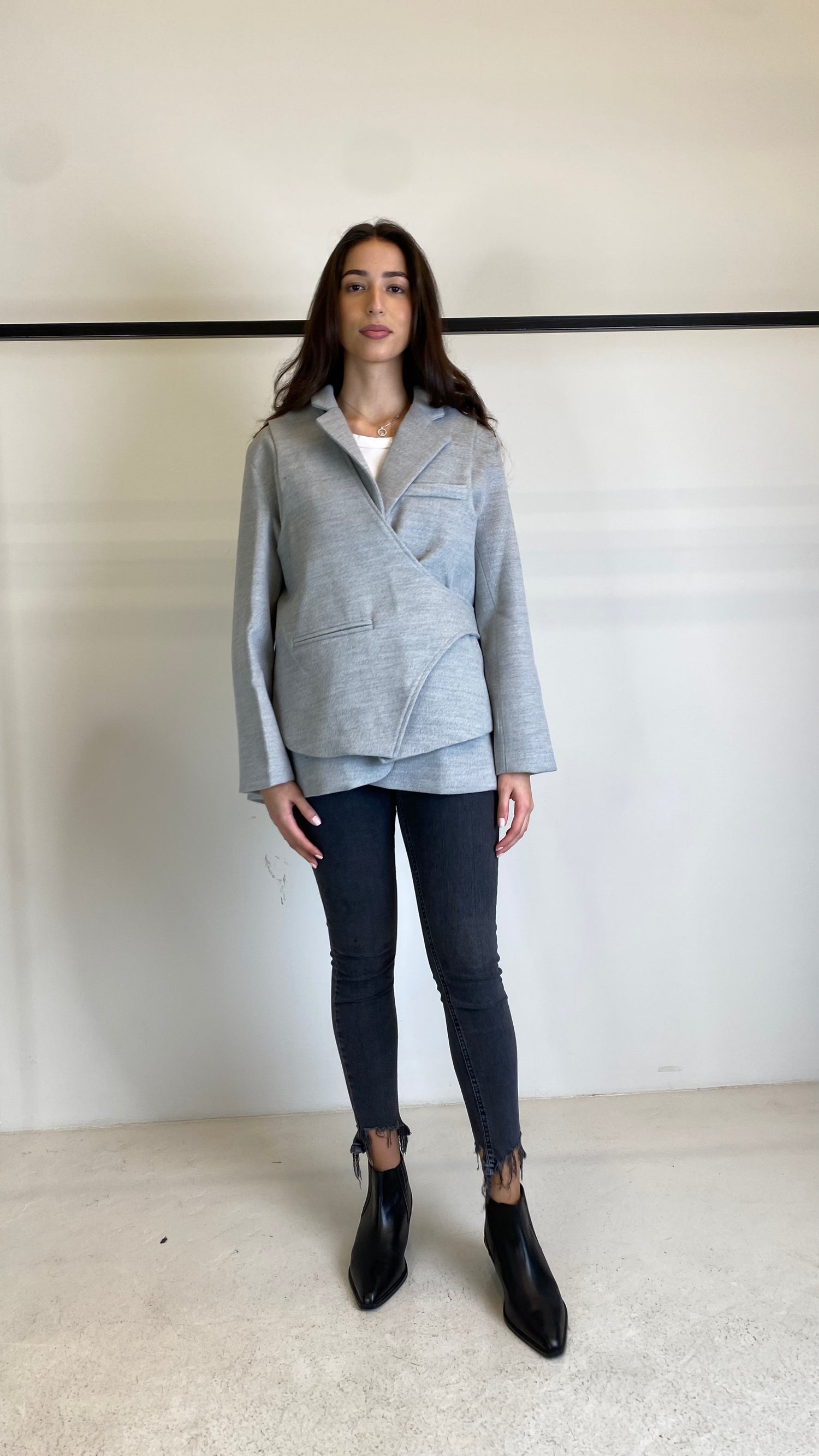 Grey Wool Wrap Blazer